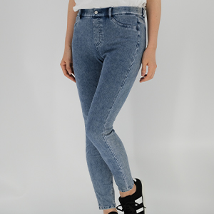 デニム生地にストレッチ機能を加えたカジュアルパンツ。